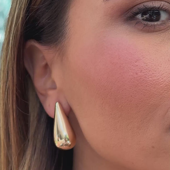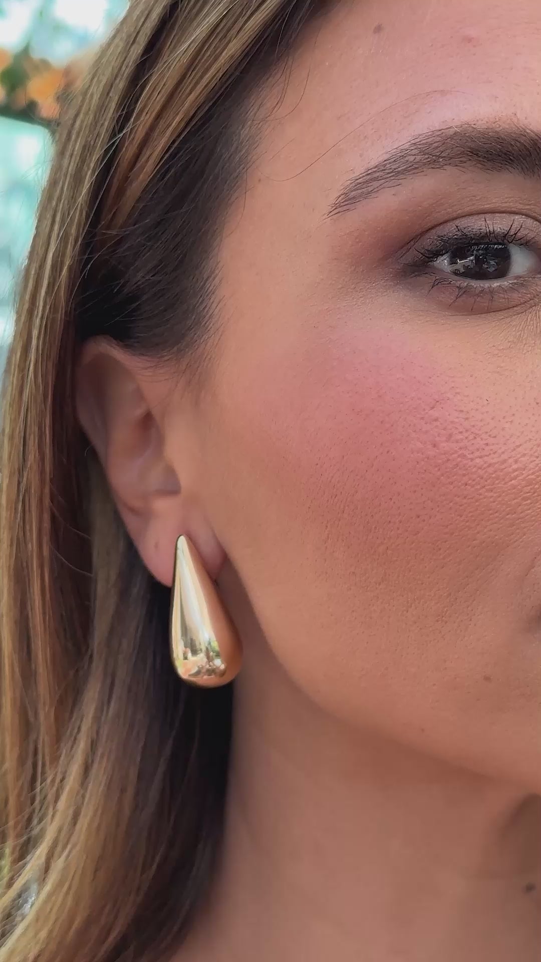 O brinco gota lisa de 35mm traz um design alongado e moderno que valoriza o rosto com leveza e elegância. No banho de ouro 18k, ele ganha um brilho quente e sofisticado, perfeito para quem ama acessórios impactantes sem perder a delicadeza. Uma peça versátil, estilosa e super atual para complementar qualquer look.