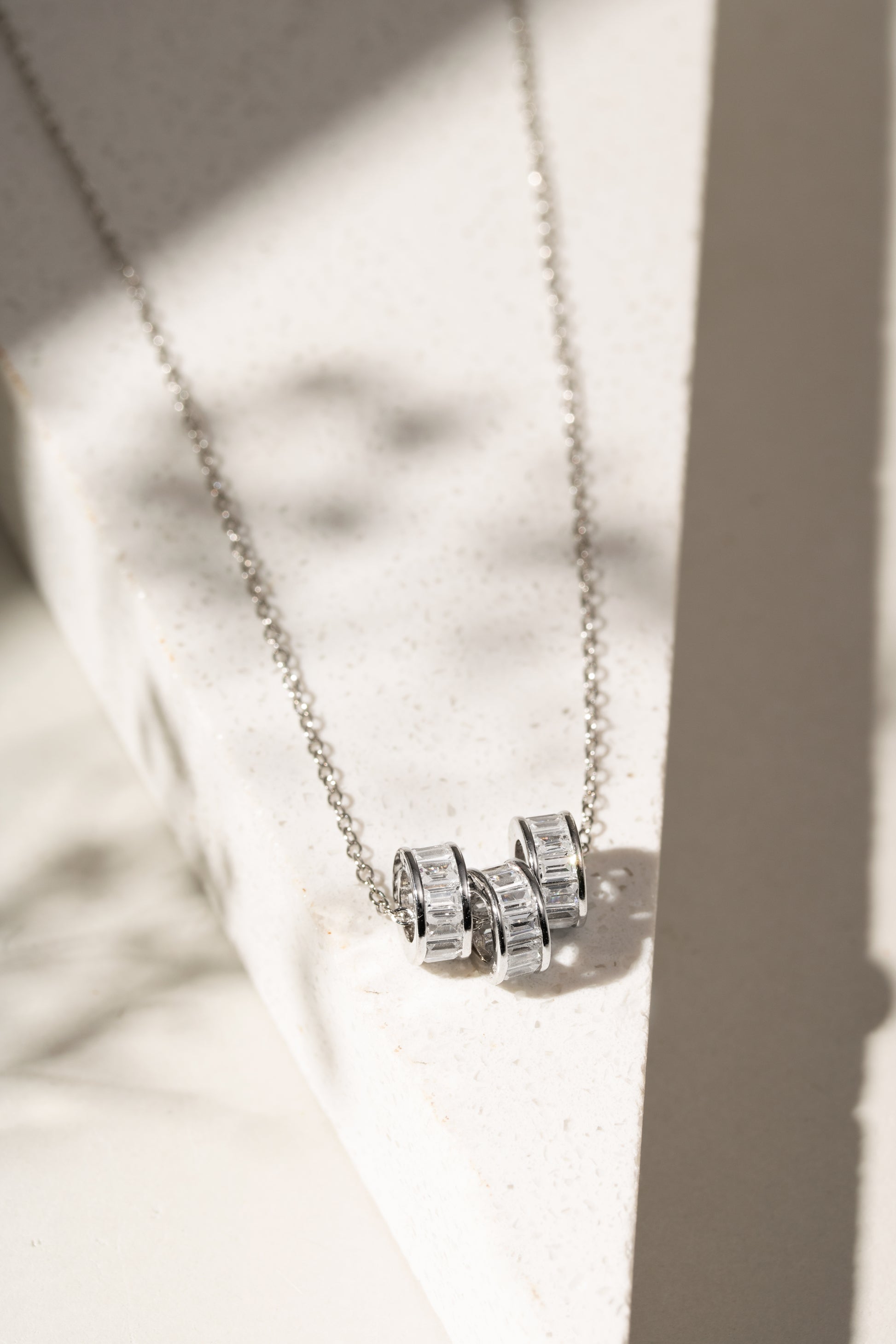 Colar Zircônia Branca com 3 Pingentes Baguete - Prata 925 com Banho de Ródio