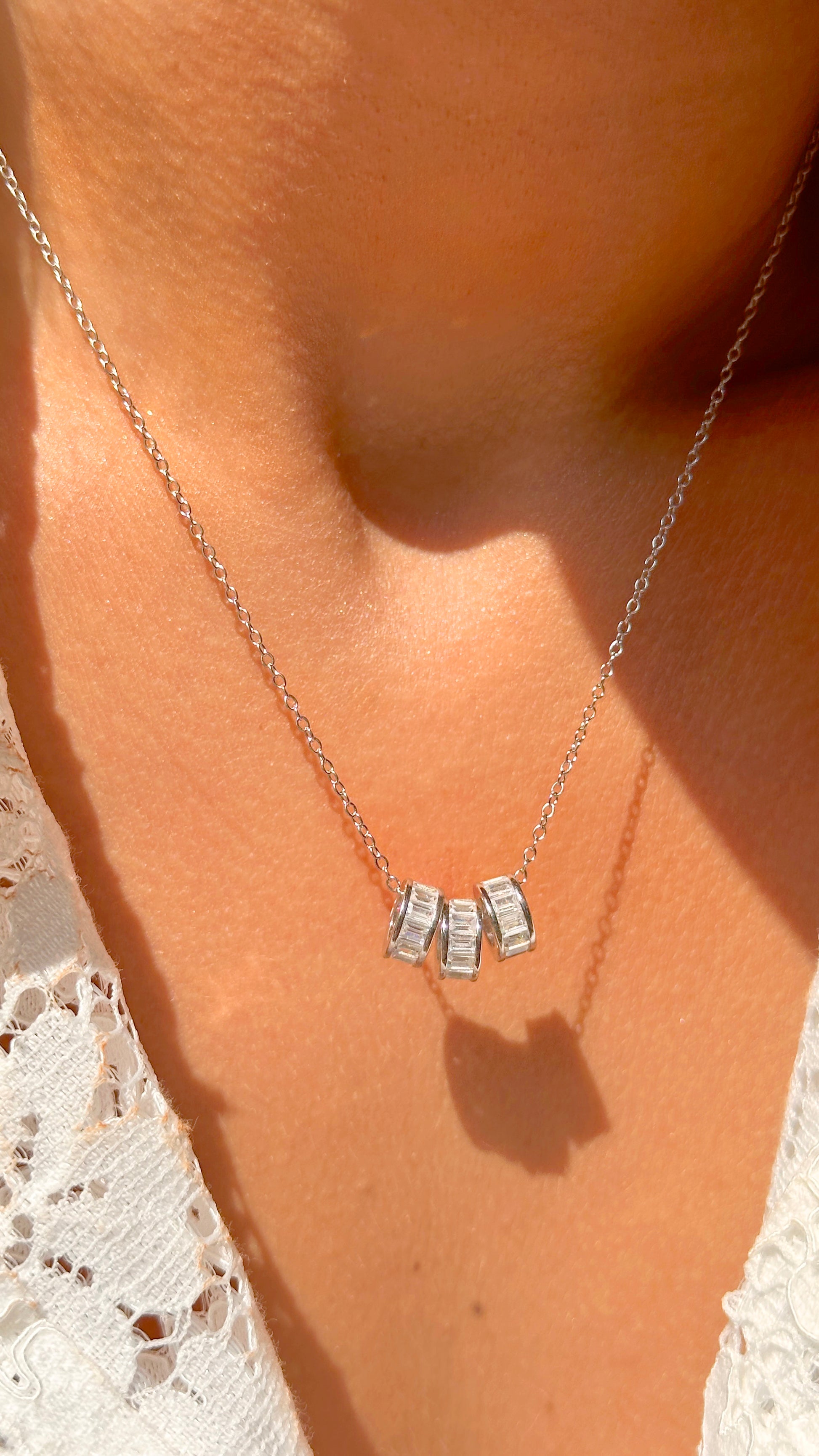 Colar Zircônia Branca com 3 Pingentes Baguete - Prata 925 com Banho de Ródio Branco.