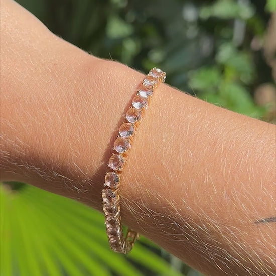 Pulseira Riviera Inteira Cristal Berilo Rosa - Banho de Ouro 18k